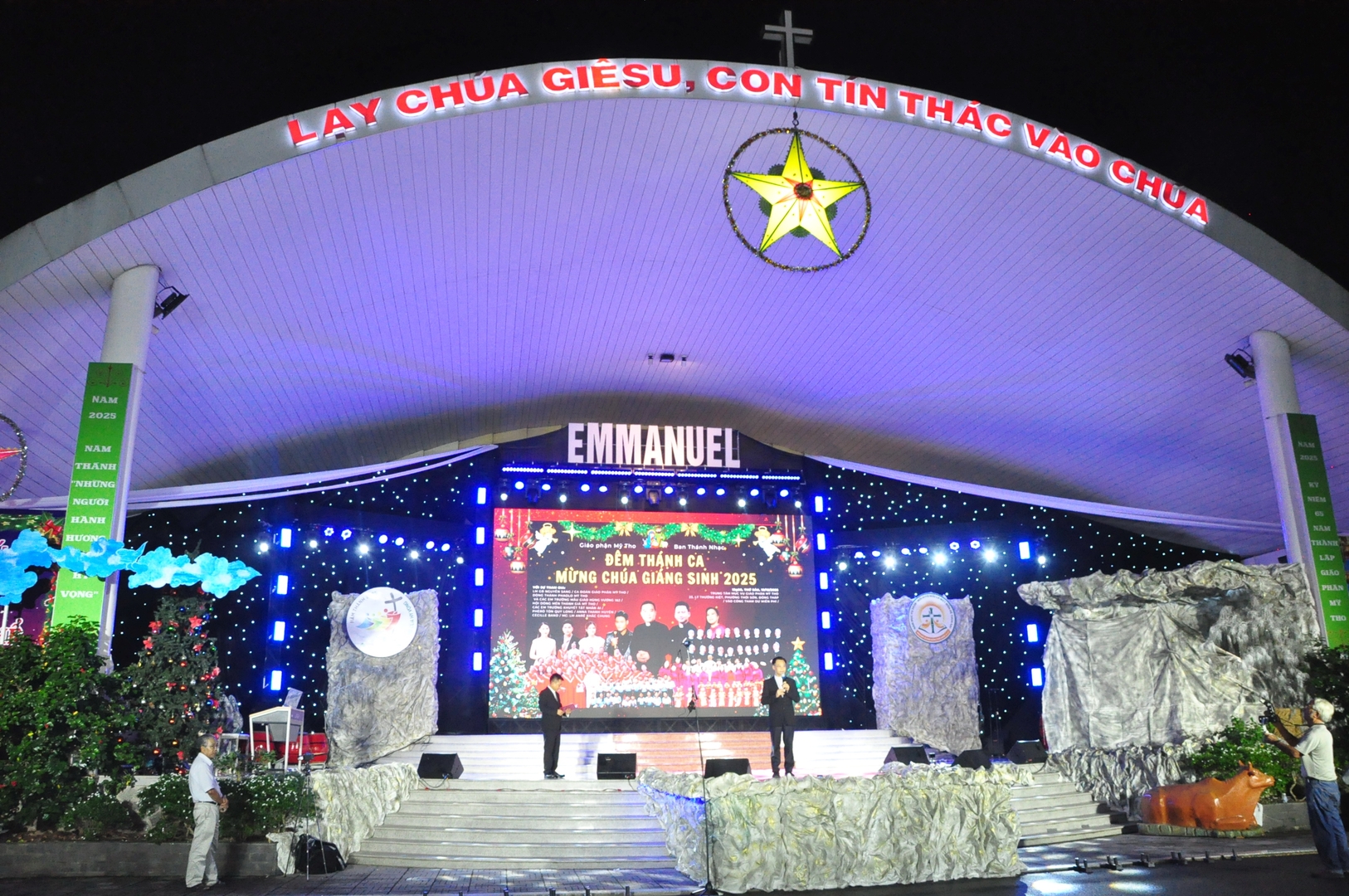 Được sự cho phép và hướng dẫn của Đức cha Phêrô Nguyễn Văn Khảm – Giám mục Giáo phận Mỹ Tho, chương trình nhằm giúp cộng đoàn hiệp ý tạ ơn Thiên Chúa, mừng kỷ niệm mầu nhiệm Ngôi Lời Nhập Thể, đồng thời cầu nguyện cho hòa bình và bình an đến với mọi người, Cha Antôn Phạm Trần Huy Hoàng – Trưởng Ban Thánh Nhạc Giáo phận đã tổ chức đêm Thánh ca Mừng Chúa Giáng Sinh 2025.