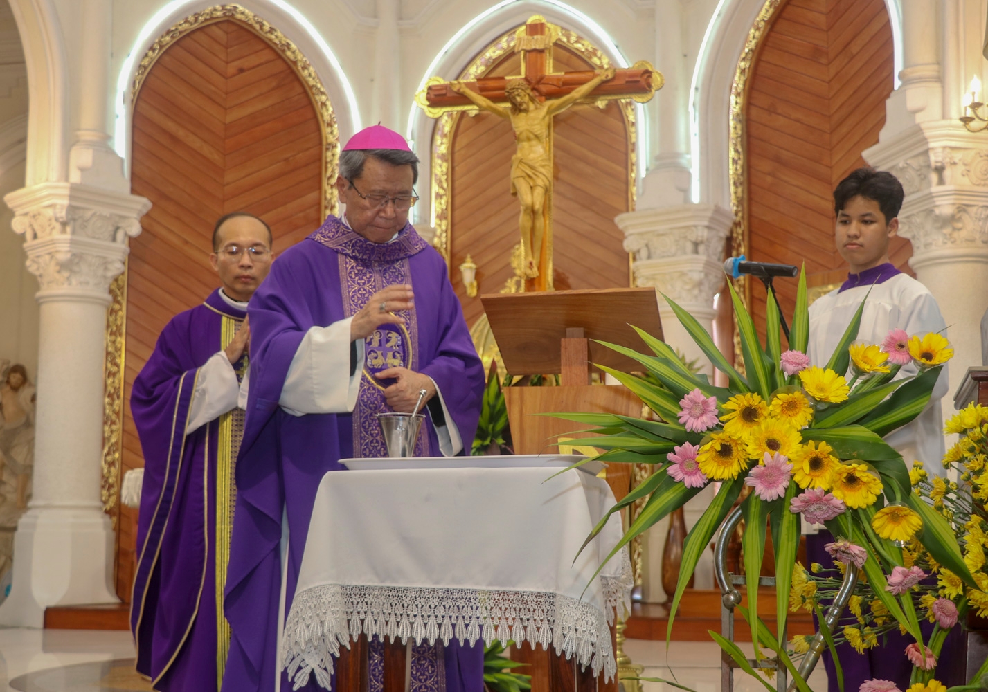 (WGPMT) Vào lúc 17g45 thứ Tư ngày 05.03.2025, Đức Cha Phêrô Nguyễn Văn Khảm - Giám mục Giáo phận Mỹ Tho đã dâng thánh lễ Tro, khai mạc mùa Chay Thánh tại Nhà thờ Chánh Toà Mỹ Tho.