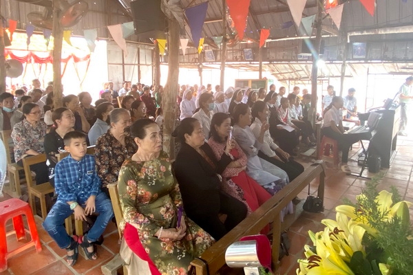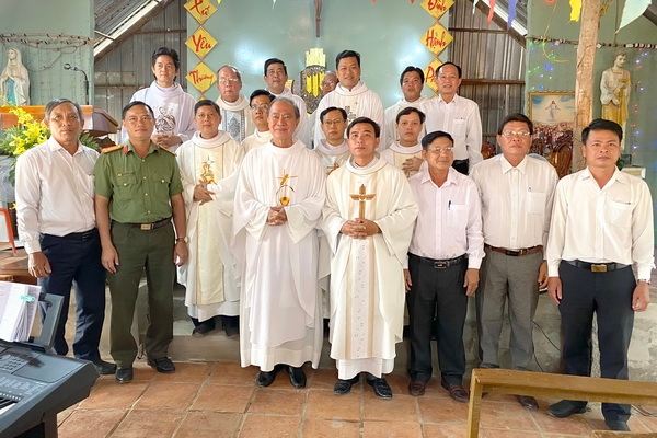 (WGPMT) Vào lúc 09g45 sáng Thứ Hai, ngày 20 tháng 02 năm 2023 tại ngôi nhà nguyện Giáo điểm Khánh Hưng thuộc Giáo xứ Vĩnh Hưng, cha Tổng Đại diện (TĐD) Giáo phận Mỹ Tho - Phaolô Trần Kỳ Minh - đã chủ sự Thánh lễ tạ ơn, công bố điểm sinh hoạt tôn giáo Khánh Hưng. Đồng tế trong thánh lễ có cha sở Vĩnh Hưng - Phaolô Hồ Minh Tuấn, cha phó biệt cư đặc trách Giáo điểm - Phaolô Nguyễn Văn Xuân, cùng 10 cha trong Giáo phận. Tham dự thánh lễ có quý thầy, quý sơ, quý khách cùng khoảng 100 bà con giáo dân.