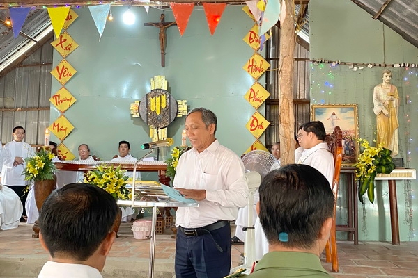 Sau lời nguyện Hiệp lễ, vị đại diện chính quyền đọc văn bản công nhận điểm sinh hoạt tôn giáo tập trung Khánh Hưng. Cha phó Phaolô bày tỏ tâm tình tri ân Đức Cha, Cha TĐD, quý cha, quý tu sĩ, và quý chính quyền cùng quý khách.