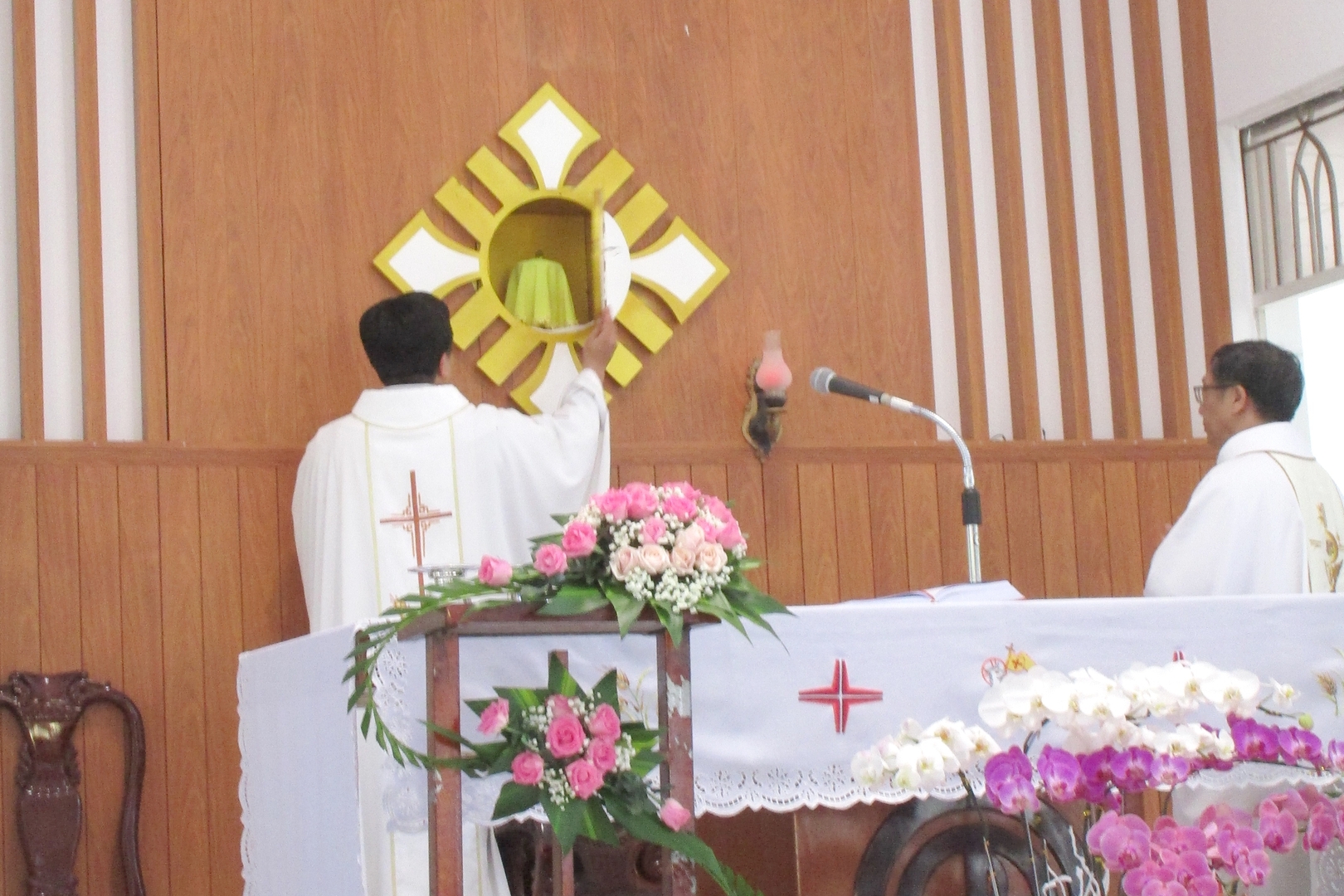 Cha sở mở cửa Nhà tạm và xông hương Mình Thánh Chúa