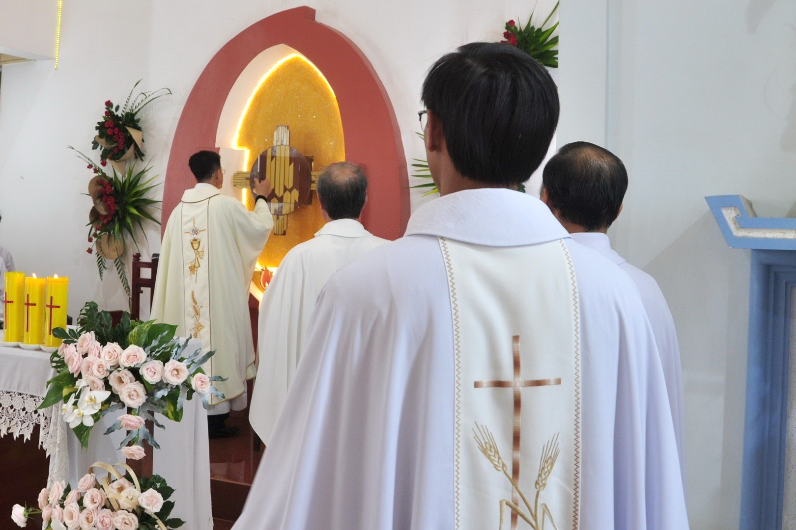 Cha sở mới mở cửa Nhà Tạm và xông hương Mình Thánh Chúa