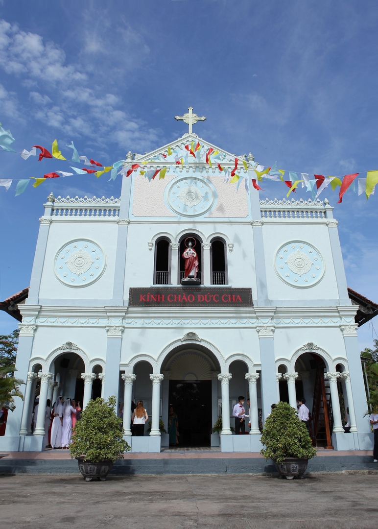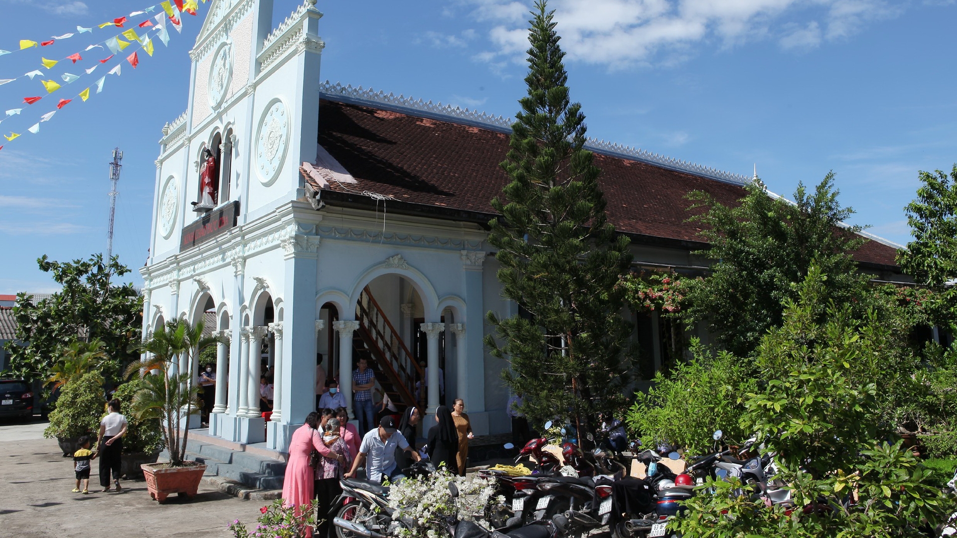 - Khoảng 1911, cha Bổn dựng một nhà thờ bằng lá thay cho căn nhà trước kia đã trở nên quá chật hẹp. Đặc biệt, cha đặt bên Pháp một cái chuông khá lớn, và đẹp mà đến nay vẫn còn sử dụng tốt.