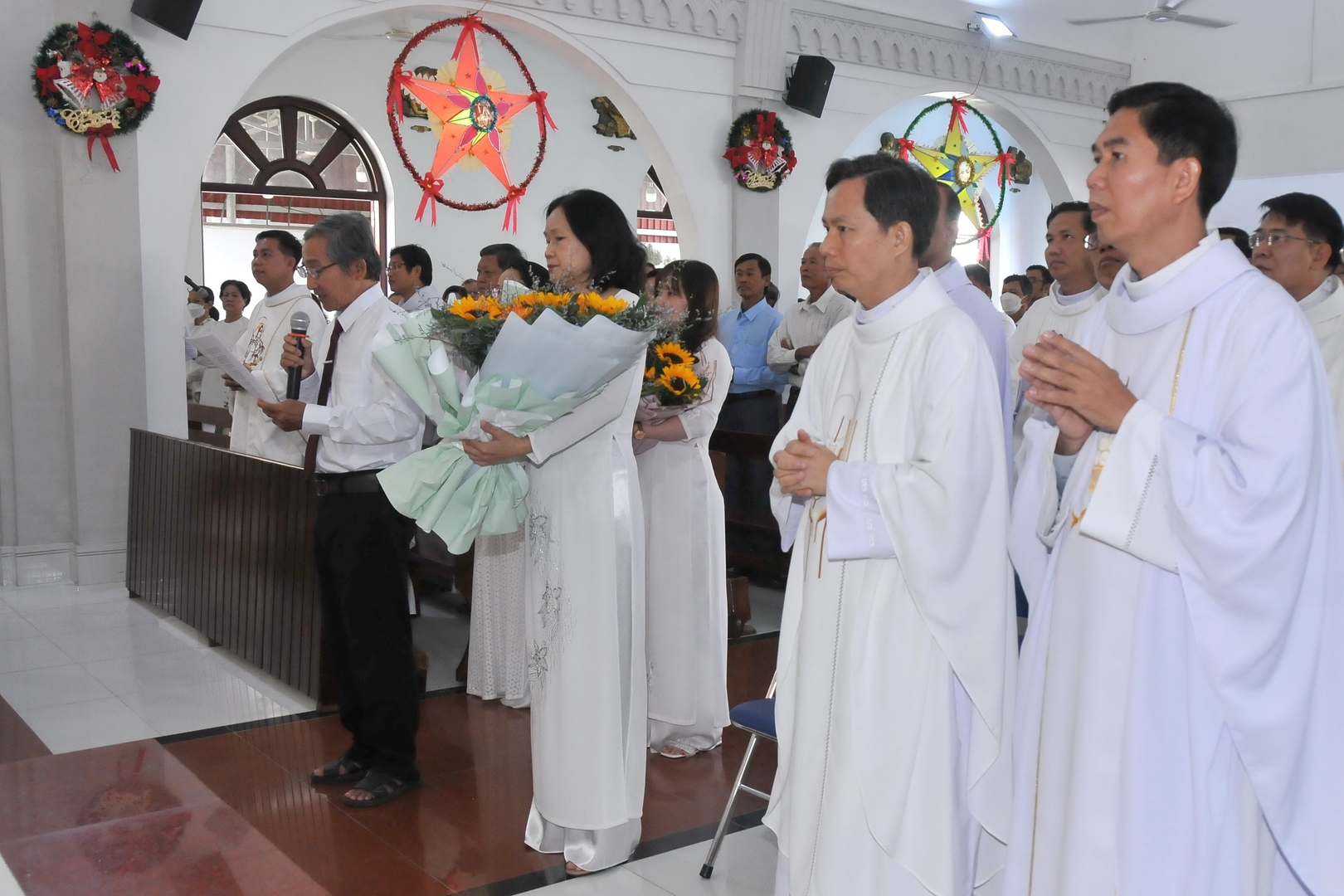 Trước khi vào thánh lễ, một vị đại diện Ban Mục vụ Giáo xứ Bình Tạo có đôi lời hân hoan chào đón quý cha quản hạt, quý cha đồng tế, quý tu sĩ, bà con giáo dân, đặc biệt là niềm vinh hạnh được mừng kỷ niệm 43 năm ngày thụ phong linh mục của quý cha (23.12.1979-23.12.2022). Cách riêng, ông cũng xin được bày tỏ tâm tình tri ân đến cha Marcel đã giúp đỡ, hỗ trợ cha sở Bình Tạo trong việc dâng thánh lễ các Chúa nhật và hướng dẫn đời sống đức tin của giáo xứ. Đại diện Giáo xứ kính dâng quý cha những bó hoa tươi thắm biểu trưng lòng kính mến và tri ân.