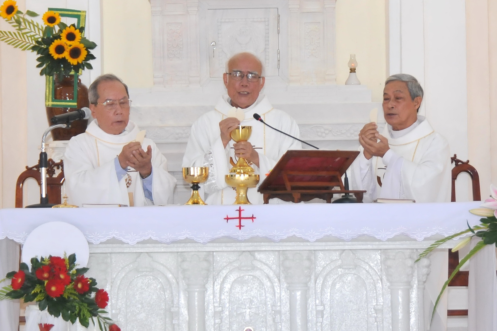 (WGPMT) Vào lúc 09g30 ngày 23.12.2022 tại nhà thờ Bình Tạo – Giáo hạt Mỹ Tho – Giáo phận Mỹ Tho, quý cha: Marcel Trần Văn Tốt, Phêrô Nguyễn Văn Thành, Gioan Baotixita Đặng Văn Hứa dâng thánh lễ đồng tế tạ ơn kỷ niệm 43 năm Hồng ân linh mục. Đồng tế với các ngài có quý cha quản hạt Mỹ Tho, Cái Bè, Tân An và 24 cha trong Giáo phận. Hiệp dâng thánh lễ còn có quý tu sĩ nam nữ, quý thân nhân, ân nhân của quý cha cùng cộng đoàn dân Chúa các xứ lân cận.