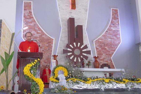 Trong bài giảng, Cha TĐD đã nói về hình ảnh một Tôma cứng lòng nhưng trọn vẹn về niềm tin, cùng với sự dằn vặt về một con Người trong hình ảnh về sự yêu thương và vâng phục. Cha mời gọi cộng đoàn chiêm ngắm hình ảnh LTXC với lời khen ngợi mà các dân ngoại dành cho các Kitô hữu đang tụ họp nơi đó: “nhìn xem những người Kitô hữu, họ yêu thương nhau biết nhường nào”. Lúc đó, bác ái, chia sẻ chính là công việc và là dấu chỉ của người Kitô hữu. Cha cũng khéo léo liên hệ ngôi nhà chung của Giáo xứ Hiệp Hòa với lễ đài LTXC. Cha ước mong lễ đài LTXC khang trang này sẽ là nơi quy tụ, nơi gặp gỡ trong tinh thần yêu thương và chia sẻ của tất cả bà con giáo dân Hiệp Hòa, và cũng ước mong bà con giáo dân nơi đây luôn sống yêu thương, chia sẻ với nhau để anh chị em lương dân sống xung quanh nhận ra Họ là Kitô hữu qua dấu chỉ yêu thương. Ước mong Giáo xứ Hiệp Hòa luôn đồng lòng chung sức xây dựng giáo xứ ngày càng trưởng thành và thăng tiến trong tình yêu thương, để anh em tôn giáo bạn cũng sẽ thốt lên rằng: "Hãy nhìn xem người Công giáo họ yêu thương nhau biết bao".