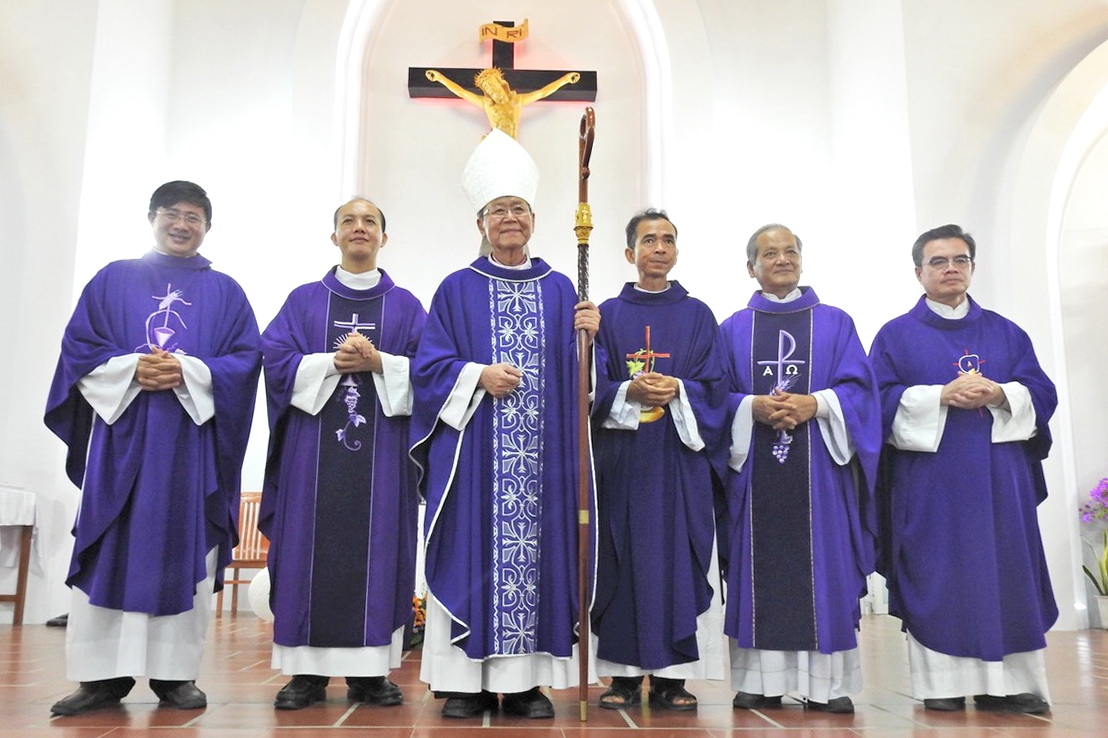 Thánh lễ kết thúc lúc 18g20, Đức Cha và quý cha cùng chụp hình lưu niệm tại cung thánh.