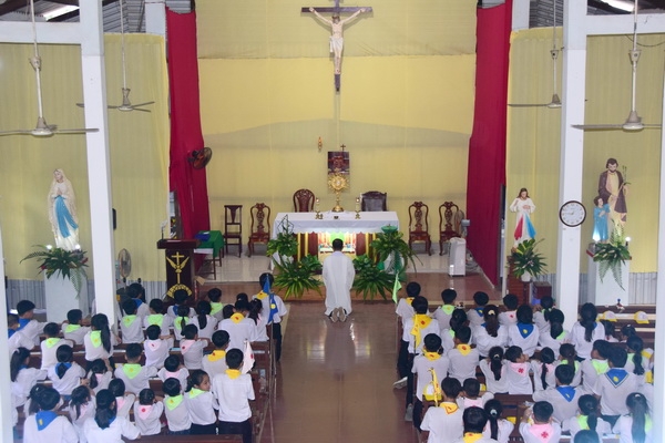 Lúc 5 giờ sáng, cha sở Tôma Nguyễn Văn Phong đã chủ sự thánh lễ khai mạc ngày trại hè. Ngài mời gọi các em thiếu nhi hãy vui chơi ngày trại trong tâm tình biết ơn đối với Chúa, với quý cha, quý dì, quý anh chị huynh trưởng đã yêu thương, dạy dỗ và tổ chức ngày trại. Cùng đó, cha cũng kêu gọi cộng đoàn cầu nguyện cách đặc biệt cho các em thiếu nhi và cầu chúc các em có một ngày trại thật vui và ý nghĩa.