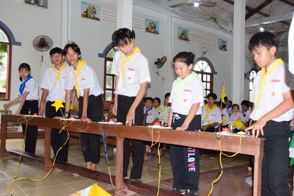 (WGPMT) Thứ Bảy, ngày 30.07.2022 Giáo xứ Long Định 1 tổ chức ngày trại hè với các hoạt động vừa mang tính giáo dục vừa mang tính thiêng liêng đan xen nhau: thánh lễ, chơi vận động, chầu Thánh Thể, đố vui giáo lý, trò chơi lớn và cuối cùng là lửa trại. Hiện diện ngày trại hè có cha phó Giuse Nguyễn Đặng Khánh Nhật, quý dì, quý anh chị giáo lý viên, huynh trưởng và các em thiếu nhi trong giáo xứ.