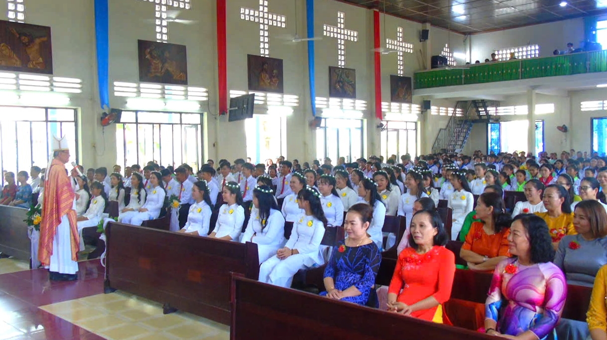 Gx. Lương Hoà Thượng: 43 em thiếu nhi lãnh nhận Bí tích Thêm Sức