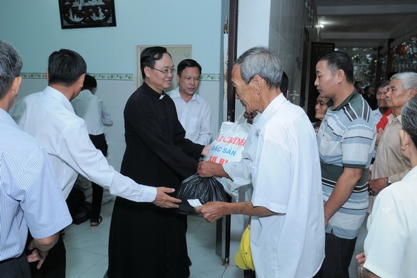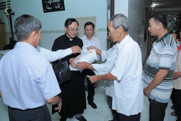 Trước khi trao quà, Cha sở có ít phút gặp gỡ ân cần hỏi thăm từng người về cuộc sống cả đời và đạo, chúc tết đến từng người có một mùa xuân bình an, khỏe mạnh và hạnh phúc.