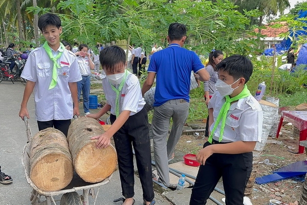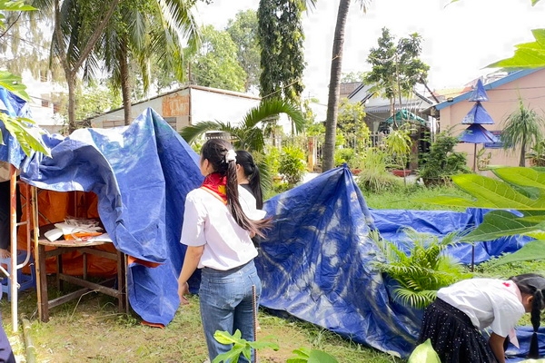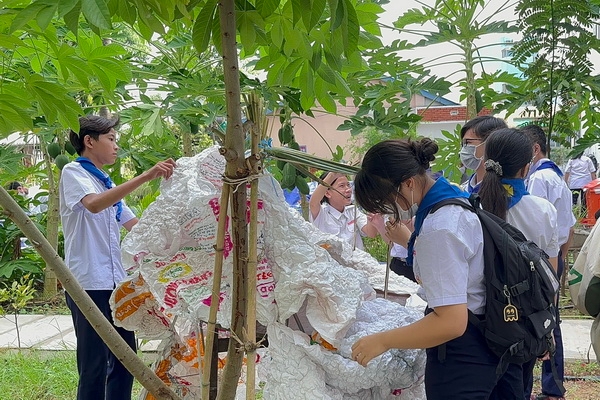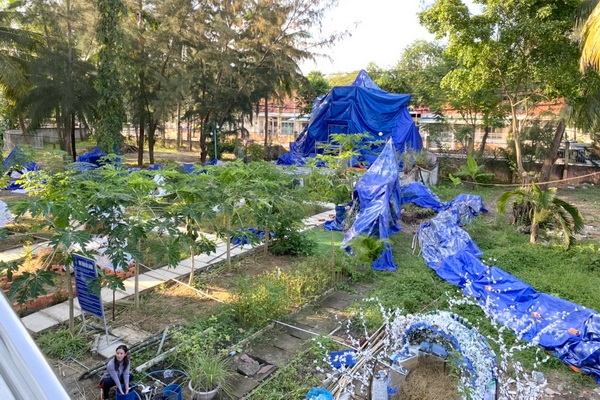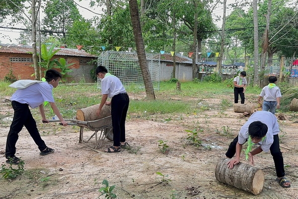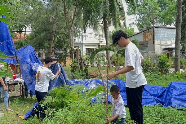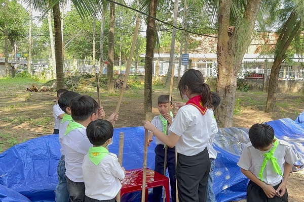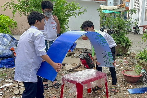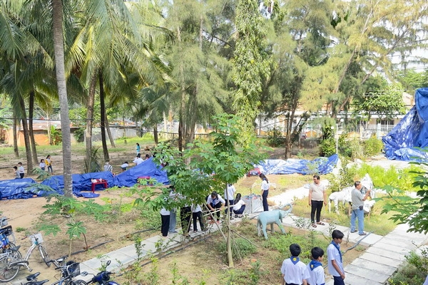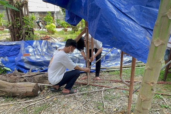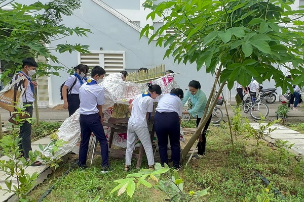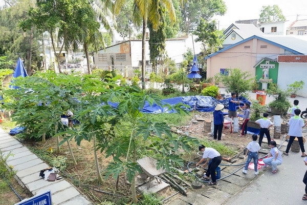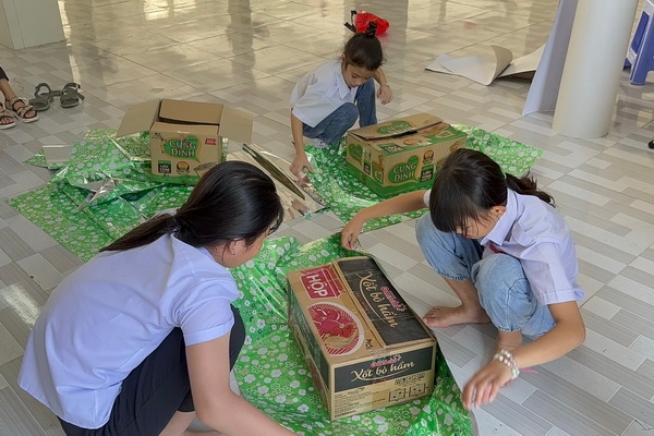 Các em rất hăng hái để tác phẩm của mình được hoàn thành tốt nhất. Những vật liệu từ những tấm bao, hộp sữa, giấy bạc, viên gạch… cùng với sự sáng tạo và chung tay của mọi người đã mang lại những tác phẩm rất dễ thương, tuy chưa hoàn thành.