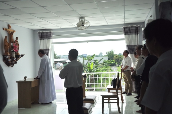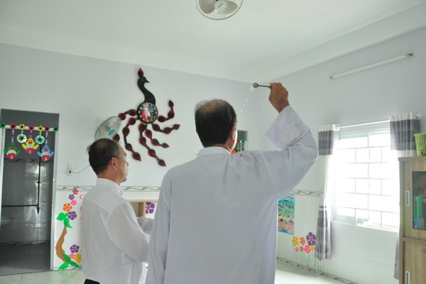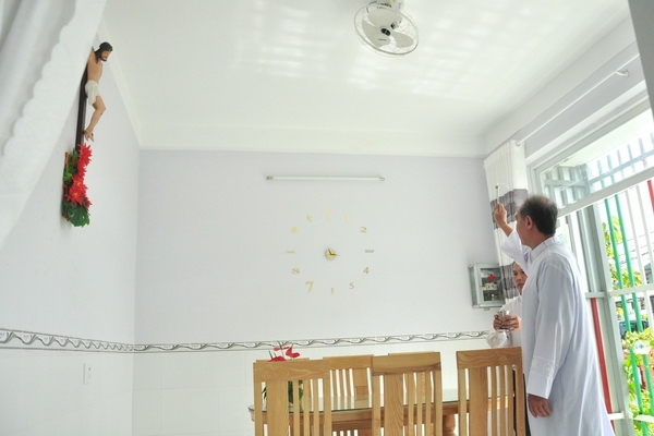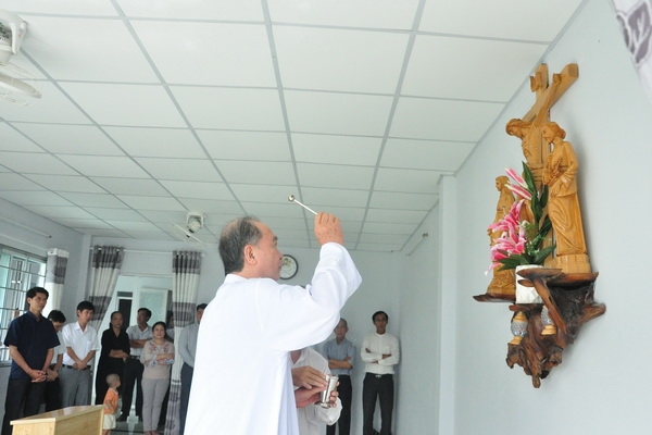 Tiếp đến, Cha như rảy nước thánh trong các căn phòng của ngôi nhà mới và kết thúc nghi thức với bài hát “Xin vâng”.