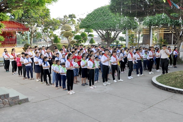 Sau khi ổn định, tập họp chữ U, các bạn được phổ biến nội qui trại mà các bạn phải tuân thủ trong ngày hôm nay. Đúng 08g00 các bạn cùng chào đón Quý Cha, Quý Thầy và Quý Trưởng trong Ban tổ chức đến chào cờ khai mạc ngày trại hôm nay với chủ đề “Dấn thân”. Qua đó, Cha sở Phêrô cũng có đôi lời nhắn nhủ với các bạn trại sinh và khai mạc.