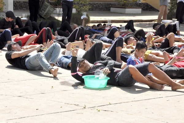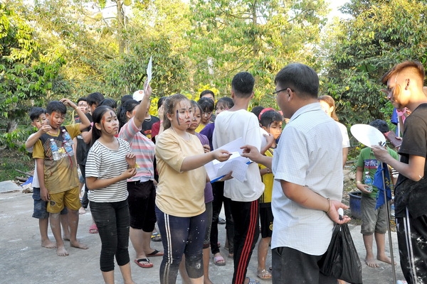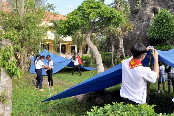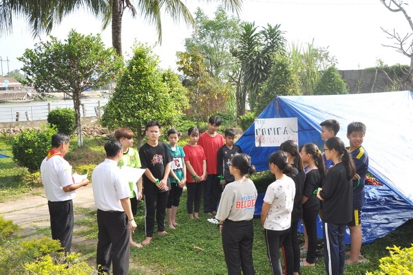 Kế đến các bạn cùng nhau bắt tay thi đua dựng lều trại và đón Ban Giám khảo đến chấm điểm. Đến 9g20 các bạn trại sinh bắt đầu bước vào thi đua các trò chơi vận động do Ban tổ chức chuẩn bị, với các trò chơi các bạn cùng nhau hợp tác, dùng hết sức để giành chiến thắng cho đội. Qua 2 giờ thi đua các bạn dùng cơm và nghỉ trưa lúc 11g00.