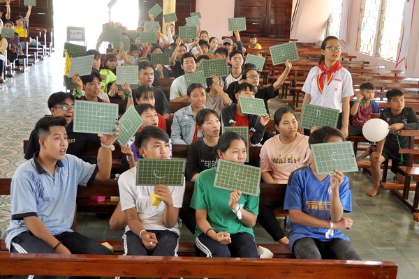 Lúc 13g00, các bạn bước vào nhà thờ cùng nhau thi đua trả lời về kiến thức Giáo lý liên quan đến Lời Chúa, Hội Thánh qua Gameshow Đấu trường Giáo lý. Sau đó, các bạn tâm tình trò chuyện với Chúa trong Giờ Chầu Thánh Thể do Cha Gioakim chủ sự. Không phải chờ đợi lâu, lúc 14g45 các bạn bắt đầu hành trình Trò chơi lớn. Các bạn phải vượt qua 5 trạm, với biết bao thử thách khó khăn nhưng các bạn vẫn vui tươi đón nhận. Ở mỗi trạm các bạn được học hỏi rất nhiều về kiến thức về Lời Chúa, về Phong trào Thiếu nhi Thánh Thể, những lời dạy dỗ từ quý Cha, quý Thầy, quý Trưởng với cuộc sống nhiều cám dỗ đối với các bạn là những người trẻ,…