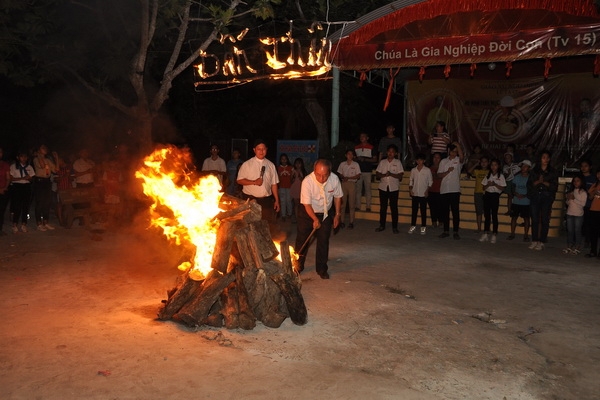 Sau giờ cơm chiều, lúc 19g00 các bạn cùng nhau quây quần bên đống lửa cùng nhau diễn lại những đoạn Kinh Thánh được Ban tổ chức giao và hướng dẫn, xen lẫn những diễn nguyện là những sinh hoạt vui, những tiết mục của các Giáo xứ bạn. Càng vui hơn nữa khi các giải thưởng của ngày trại được Ban tổ chức công bố và trao thưởng.