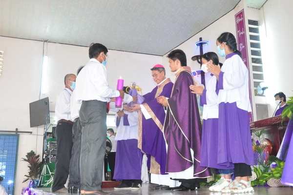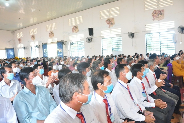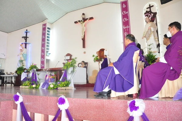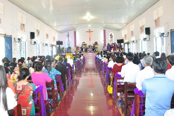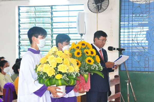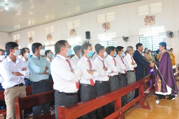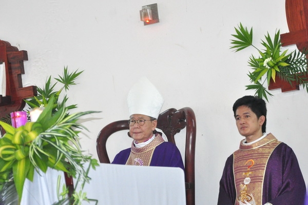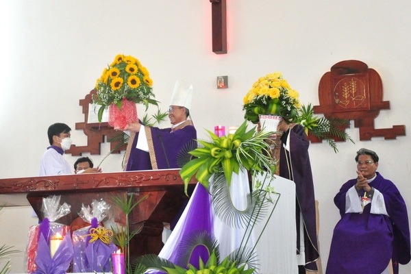 Đáp từ, Đức Cha vui mừng khi nghe lời phát biểu của ông chủ tịch HĐMVGX: “bà con tuy nghèo nhưng sống đoàn kết yêu thương nhau”. Điều đó thật đáng mừng vì mọi người biết cộng tác, chia sẻ để xây dựng giáo xứ mỗi ngày tốt đẹp hơn.