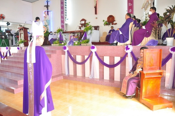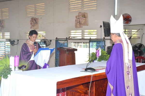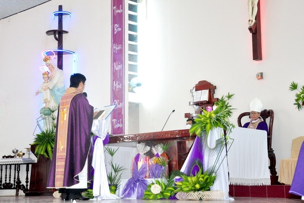 Trong bài giảng, dựa vào đoạn Tin mừng nói về khởi đầu sứ vụ công khai của Chúa Giêsu, Ngài được Thánh Thần dẫn vào hoang địa. Qua đó Đức Cha cũng liên hệ tới sứ vụ linh mục của Cha Phaolô nhận nhiệm sở vào mùa chay, điều đó cũng nói lên ý nghĩa và định hướng cho một cha sở giáo xứ.