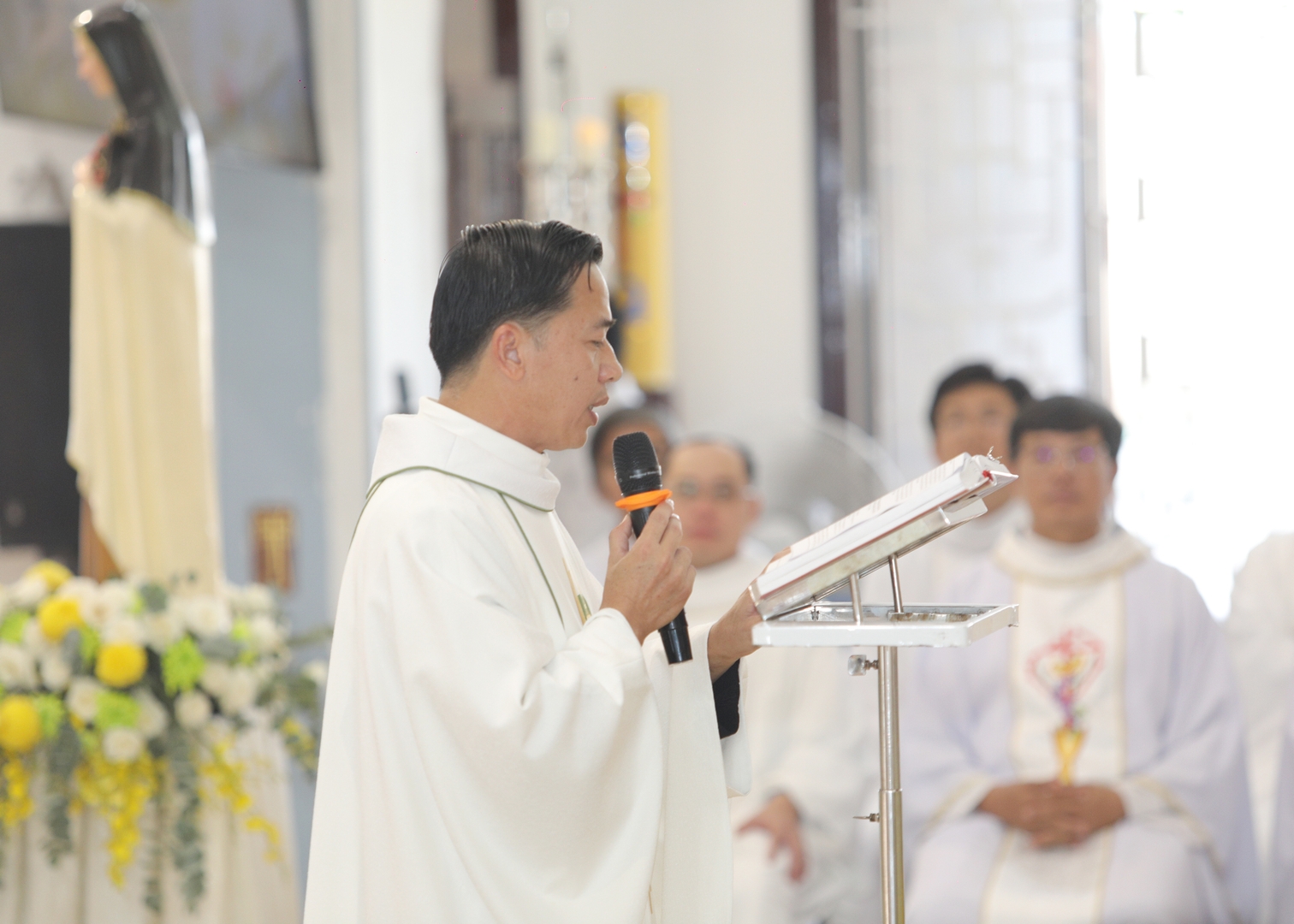 Thánh lễ được cử hành vào lúc 09g30, với sự hiện diện và đồng tế của 28 cha