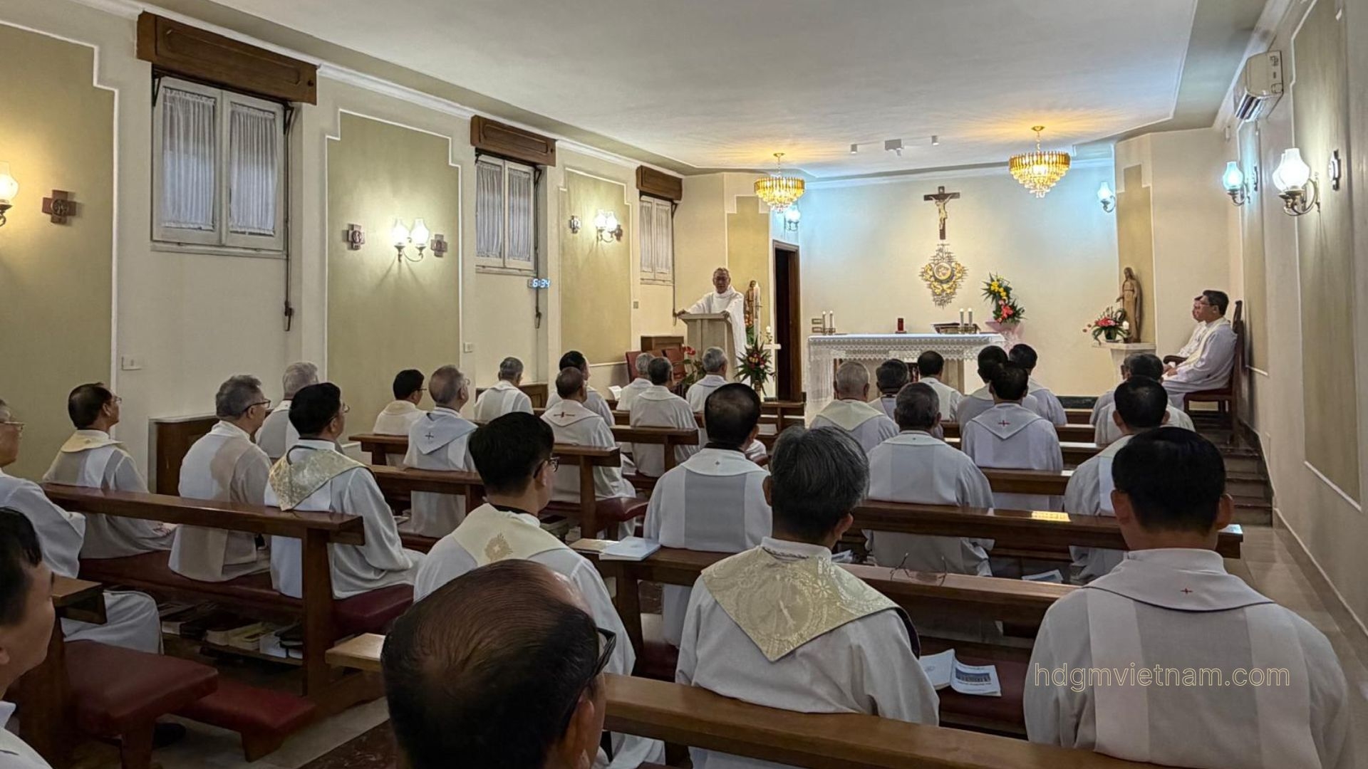 Ngay từ sáng sớm, tại Foyer Phát Diệm, các Đức Giám mục đã quy tụ trong giờ nguyện gẫm và hiệp dâng Thánh lễ tạ ơn Thiên Chúa, đồng thời phó dâng toàn bộ hành trình Ad Limina dưới sự hướng dẫn của Chúa Thánh Thần. Đây là những giây phút thiêng liêng để các mục tử chuẩn bị tâm hồn trước khi bước vào những cuộc gặp gỡ quan trọng với các bộ của Toà thánh - những cuộc gặp gỡ không chỉ là đòi hỏi của giáo luật, mà còn diễn tả tình hiệp thông Giáo hội.
