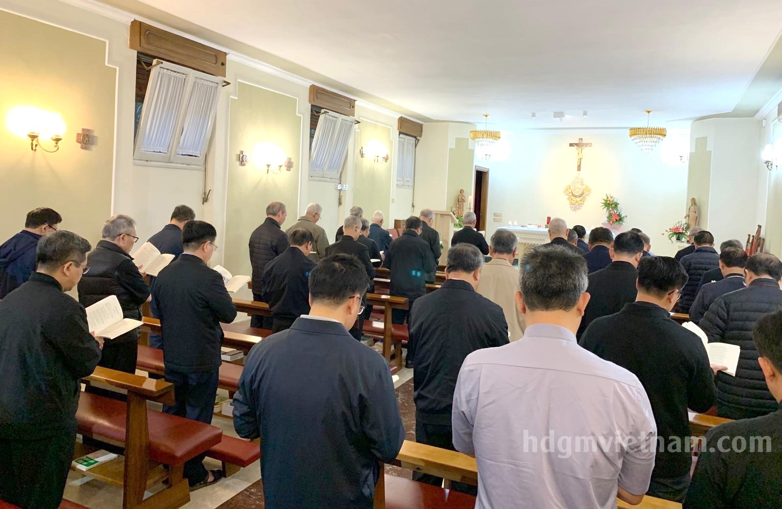 Buổi chiều, các Đức Giám mục đến dâng Thánh lễ tại Đền thờ Thánh Phaolô Ngoại Thành, cùng với đông đảo linh mục, tu sĩ Việt Nam đang theo học hoặc đang phục vụ tại Rôma. Đức Tổng Giám mục Giuse Vũ Văn Thiên, Phó Chủ tịch HĐGMVN, mời gọi cộng đoàn cảm nhận hồng ân đặc biệt khi được cùng hiện diện và dâng lễ ngay tại trái tim của Giáo hội hoàn vũ, nơi cội nguồn của đức tin tông truyền.