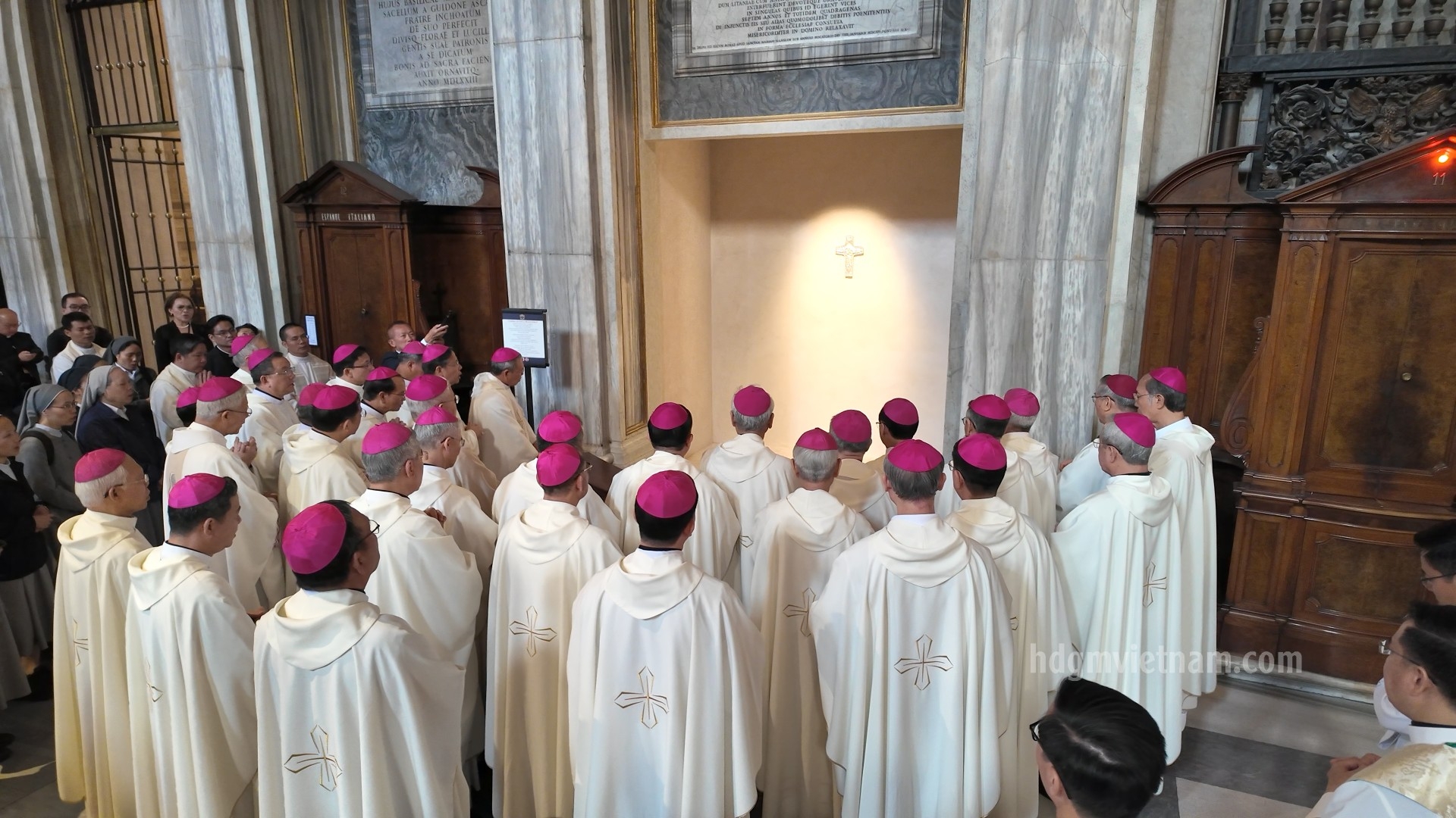 WHĐ (24/4/2026) - Thứ Năm, ngày 23/4/2026, tiếp tục hành trình Ad Limina Apostolorum 2026, Hội đồng Giám mục Việt Nam (HĐGMVN) đã dâng Thánh lễ tại Vương cung Thánh đường Đức Bà Cả, đến thăm Bộ Tuyên thánh, Bộ Tu sĩ, Bộ Văn hoá – Giáo dục, và Văn phòng Thư ký Thượng hội đồng Giám mục. Một ngày làm việc bận rộn, nhưng tràn đầy niềm vui và tình hiệp thông.