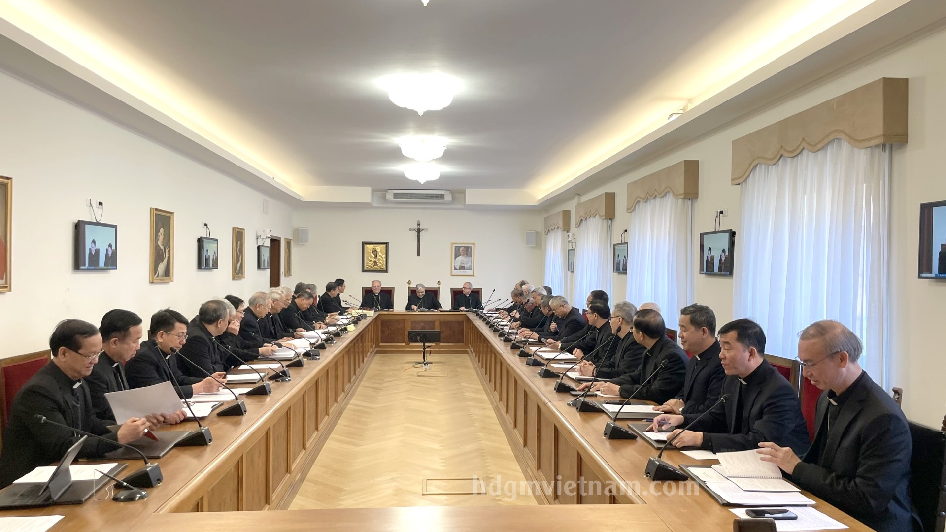 Đức cha Phêrô Nguyễn Văn Khảm, Viện trưởng Học viện Công giáo Việt Nam cũng đã trình bày về hoạt động của học viện và nói lên những triển vọng mà học viện đang hướng tới. Đáp lại, Đức cha Tổng Thư ký đã nói lên niềm vui mừng về những thành quả trong giáo dục đức tin mà Hội Thánh tại Việt Nam đã làm được trong thời gian đầy khó khăn và thách đố vừa qua. Từ đó cho thấy sự can đảm và trung tín của các tín hữu tại Việt Nam. Ngài khích lệ các Đức Giám mục tiếp tục định hướng phát triển giáo dục đức tin và cho biết thánh Bộ sẽ luôn đồng hành cùng các hoạt động giáo dục, nhất là đào tạo nhân sự tại Học viện Công giáo Việt Nam.