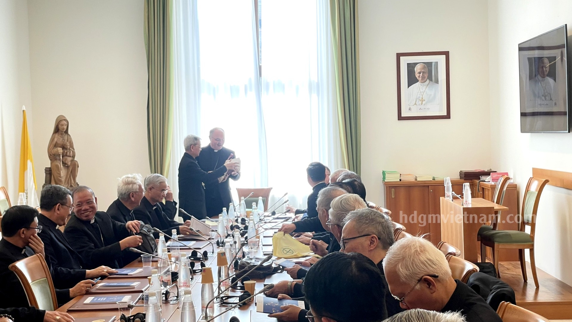 Đức cha Phêrô Nguyễn Văn Khảm, Chủ tịch Ủy ban Tu sĩ, đã đại hiện HĐGMVN chia sẻ về niềm vui và thách đố của các tu sĩ và người sống đời thánh hiến hiện nay tại Việt Nam. Đức Hồng y Phó Bộ trưởng đã nói lên niềm vui mừng về sức sống, sự năng động và phong phú về ơn gọi tu sĩ và đời sống thánh hiến ở Việt Nam. Bộ đã kiên nhẫn lắng nghe các Đức Giám mục vừa giải trình, vừa thắc mắc về đời sống các dòng tu, qua đó hiểu hơn về tiến trình hình thành và những đặc thù của các dòng tu cấp giáo phận tại Việt Nam.