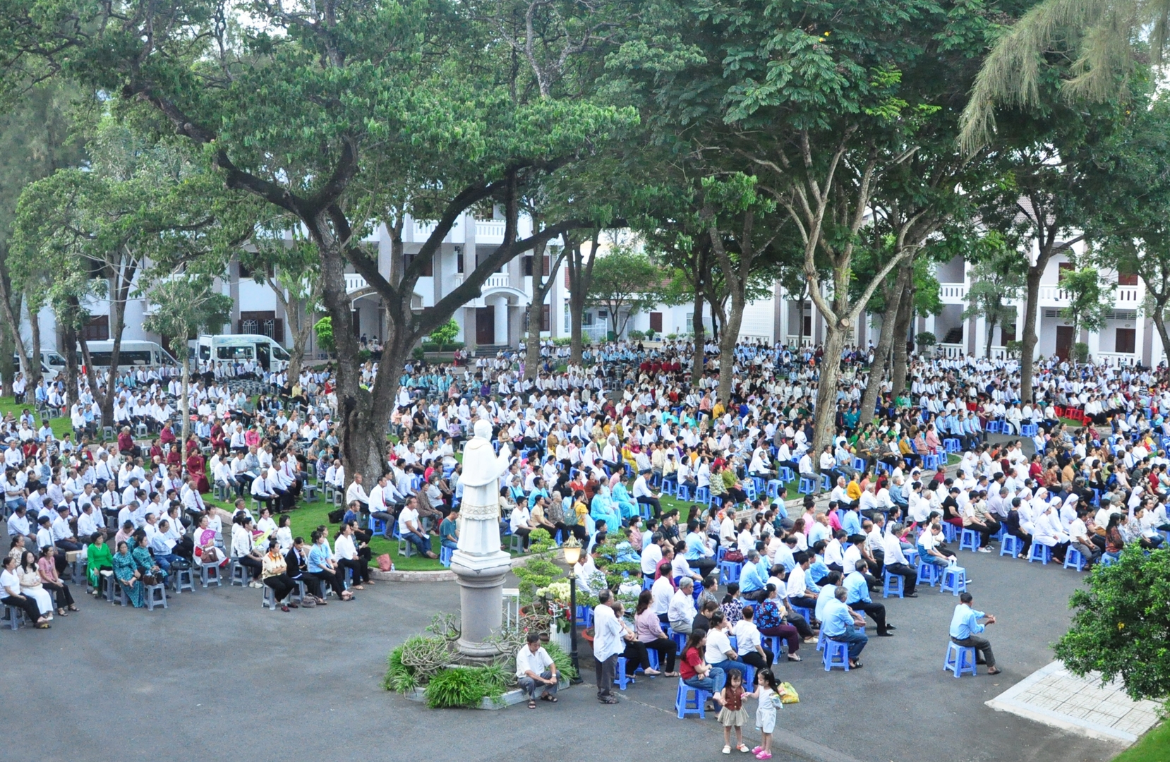Lúc 16g10 tại TTMV, cộng đoàn hành hương đã tề tựu đông đủ để cùng nhau lần chuỗi Mân Côi kính Lòng Chúa Thương Xót.