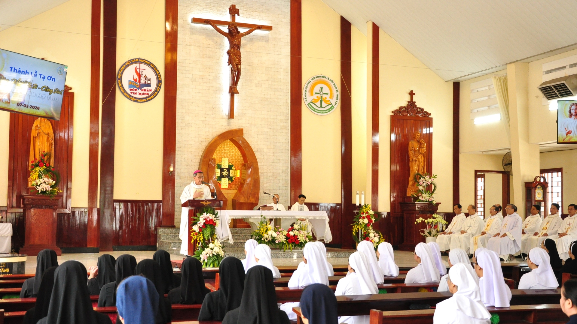 Trong bầu khí rộn ràng chuẩn bị đón mừng Xuân Bính Ngọ 2026, vào ngày 07.02. 2026 (20.12.2025 âm lịch), hơn 250 người, gồm quý tu sĩ, chủng sinh giúp năm, chủng sinh dự bị và dự tu, đã quy tụ về Trung tâm Mục vụ (TTMV) Giáo phận Mỹ Tho, tại Nhà thờ Nữ Vương Hòa Bình, để tham dự ngày họp mặt tu sĩ Giáo phận. Ngày họp mặt được tổ chức dưới sự hướng dẫn và đồng hành của cha Phêrô Phạm Bá Đương – Đặc trách tu sĩ và chủng sinh Giáo phận.