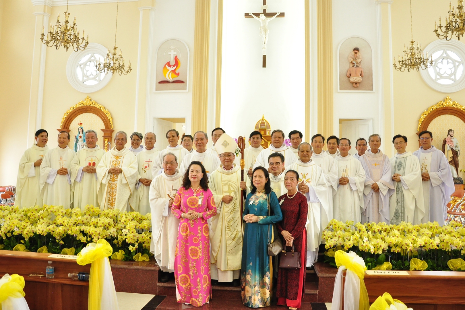 Đức cha Phêrô, quý cha, cùng quý ân nhân chụp hình lưu niệm sau Thánh lễ