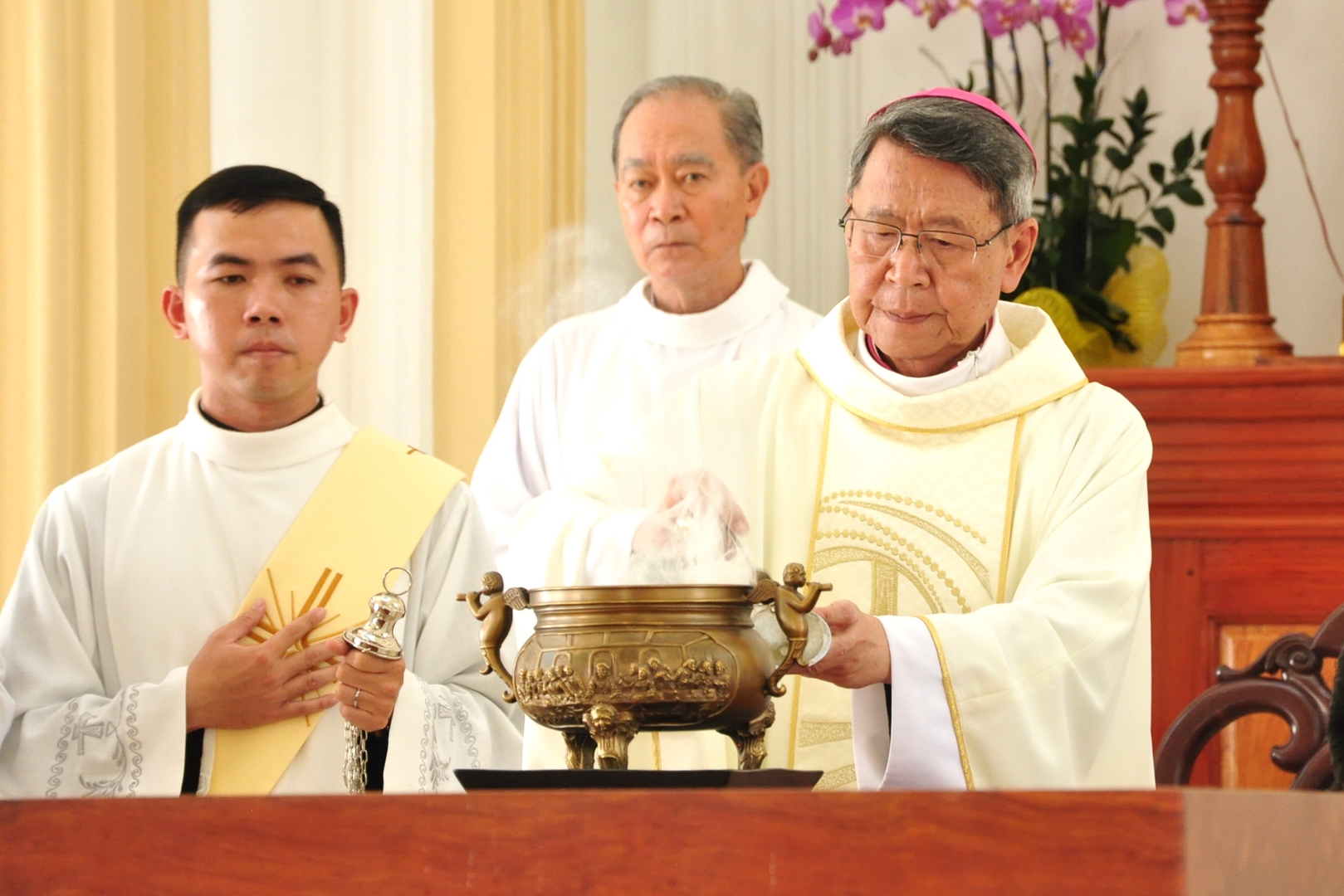 Đức cha Phêrô bỏ hương và xông hương Bàn thờ