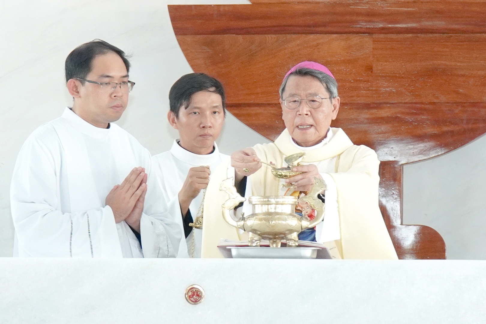 Đức Cha Phêrô xông hương bàn thờ