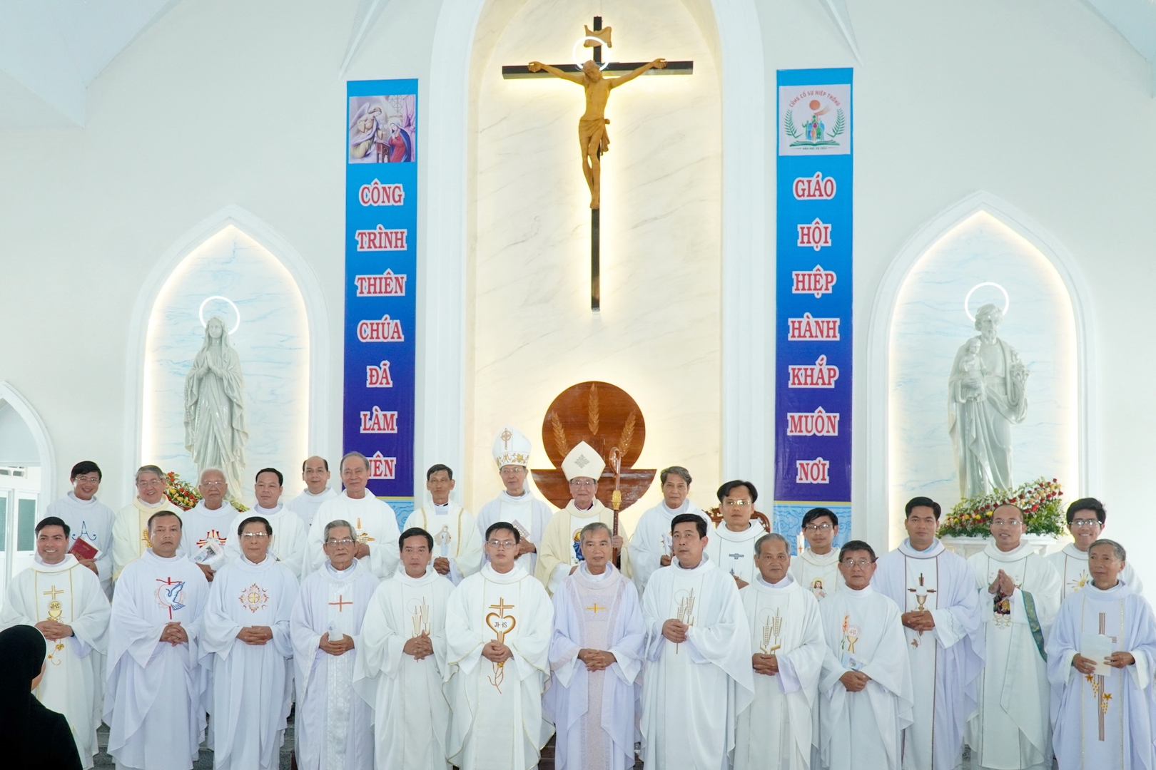 Quý Đức Cha và quý cha cùng chụp hình lưu niệm trước cung thánh