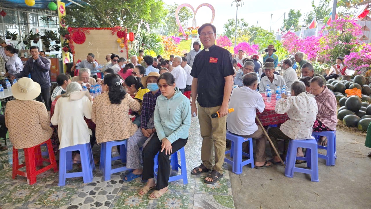 Cha Giacôbê Nguyễn Minh Phụng trao tặng những phần quà tết tại Giáo xứ Phaolô - Bà Từ